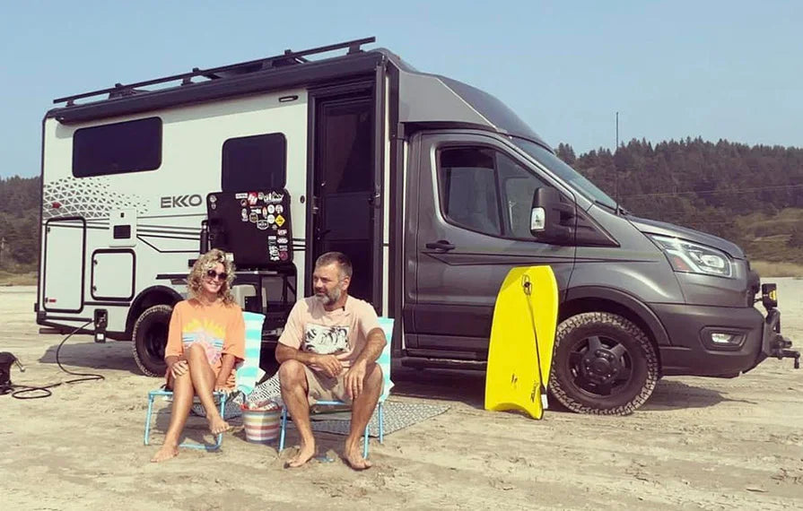 Traveling in our Winnebago EKKO blends modern convenience with expansive off-road capabilities, courtesy of the AWD system and the “Bad Betty Package”. From utilizing mobile apps for planning to conducting meticulous pre-road checks, each step ensures a seamless journey ahead. Packing essentials, meal planning, and safety checks are all integral parts of our routine, enabling us to fully immerse ourselves in the present season and explore diverse landscapes, from snowy forests to endless beaches.