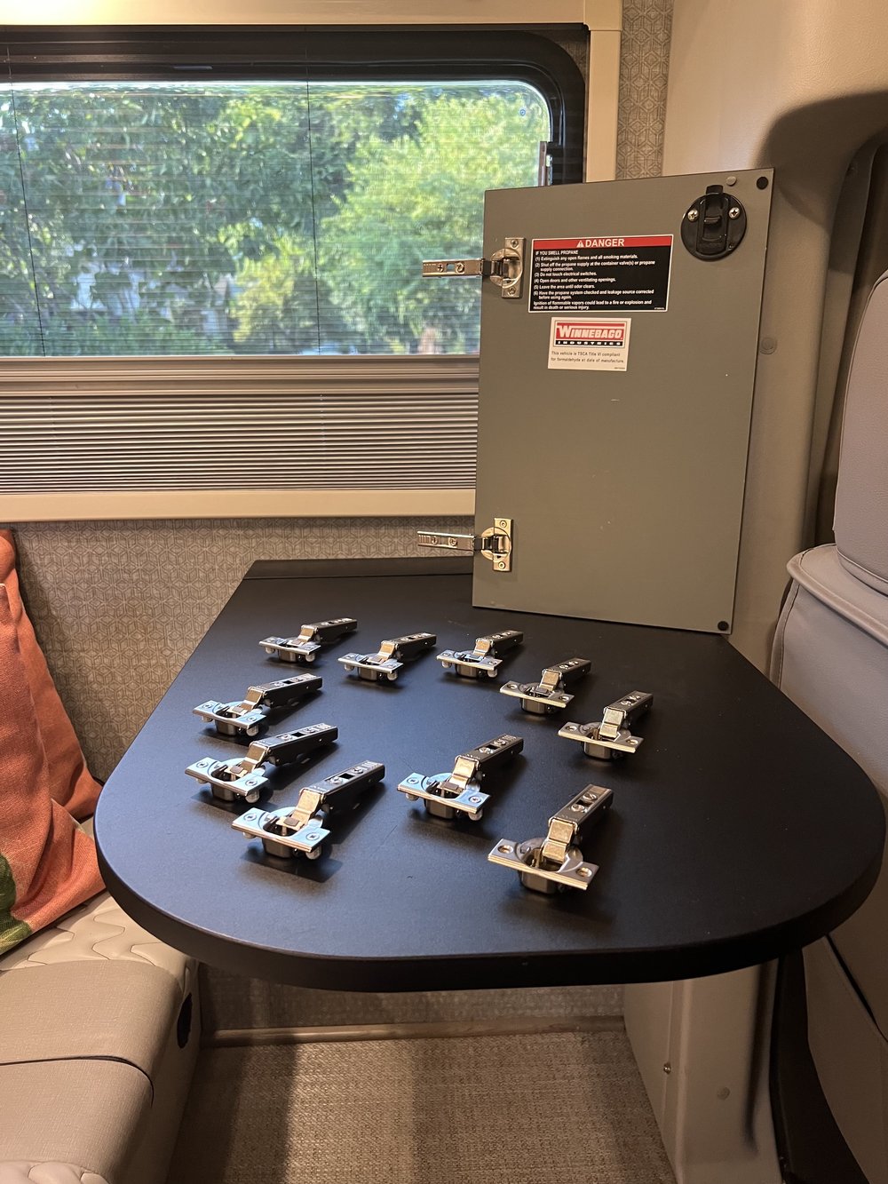 Set of 10 pc. Soft Closing Hinges. Direct fit, easy install, ready to go in minutes, let us help you Upgrade Your Winnebago EKKO. No more abuse to the latches or doors.